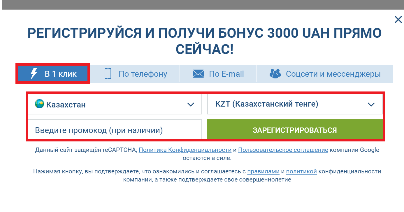 1xBet регистрация в один клик. Моментальная регистрация, которую предлагает контора (надежная контора и популярная контора). Этот способ быстрой регистрации позволяет зарегистрироваться за несколько секунд. Достаточно нажать кнопку ввести: валюту, потом кнопку: регион проживания и кнопку: подтвердить, что игрок не робот. Жмем смелее и все получится! Сразу придет пароль и логин. Не забывайте пароль!